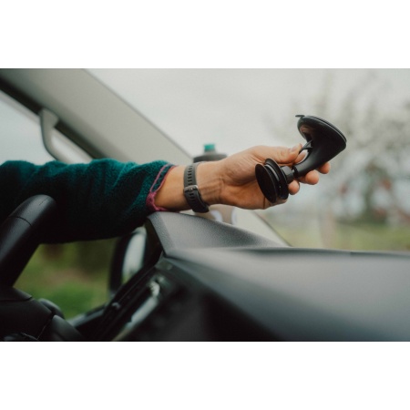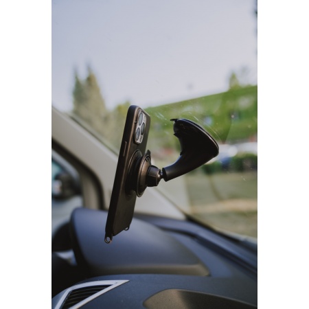 Die VACUUM car suction base besteht neben dem magnetichen Saugnapf mit Bedienhebel aus einem Kugelkopfgelenk und einem weiteren Saugnapf für die Windschutzscheibe.