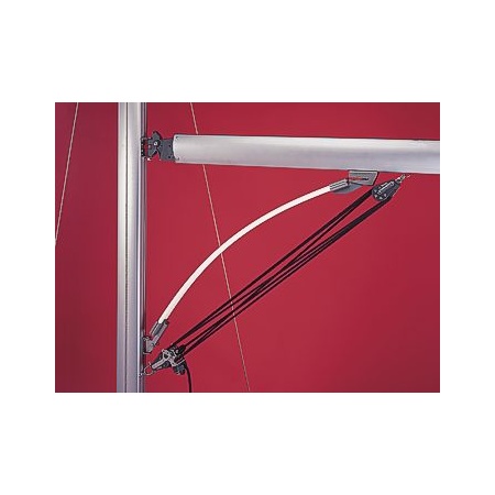 BARTON BOOM STRUT, leicht und schmal. Zwei beschichtete Fiberglassfederstangen ind weiß oder schwarz unterstützen den Baum. Das Anziehen des Niederholers bewirkt, daß die Federstangen nach oben wegbiegen und beim Fieren des Niederholers sich in Ihre alte Position zurückbewegen und damit den Baum stützen. Einfache Montage direkt vor dem vorhandenen Niederholer.