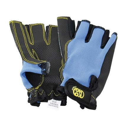 Der Handrücken besteht aus dehnbarem, blauen Nylon Gewebe. Gummiverstärkte Griffflächen für optimalen Grip. Klettverschluss für einen guten Sitz. Gummizug am Handgelenk.