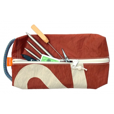 Praktische Spleißertasche aus gebrauchtem Segeltuch mit Griff aus GLEISTEIN Tauwerk.