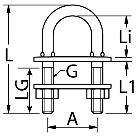 U-Bolzen aus Edelstahl 1.4401, obere Gegenplatte lose