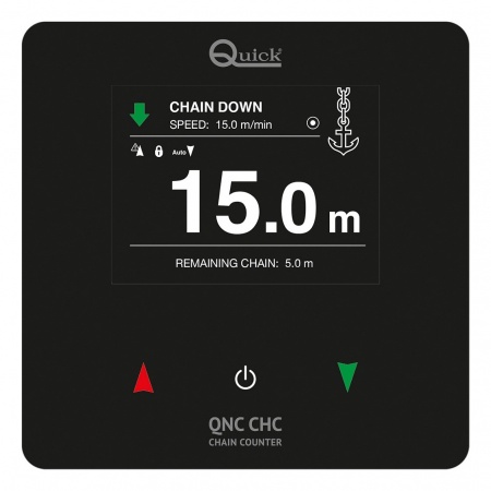 Das Modell QNC CHC ist ein komplettes Gerät zur Fernbedienung der Ankerwinde und gleichzeitigen Überwachung der ausgeworfenen Kettenlänge mit Hilfe des grafischen LCD-Displays.