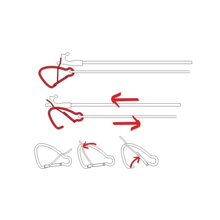 Die Hülse des Fangkarabiners kann mit den 2 enthaltenen Schrauben an jedem Bootshaken befestigt werden.