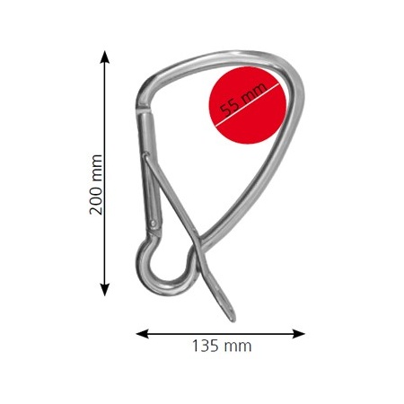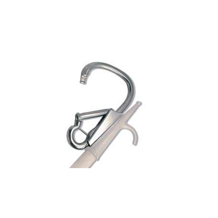 Bojen-Karabinerhaken aus Edelstahl 1.4401 der komplett ohne Befestigungen am Bootshaken auskommt. Durch seine enorme Öffnungsgröße und die einfache Handhabung wird das An- und Ablegen an einer Boje erheblich vereinfacht. Nach CE EN 795/B. Eine Sperrvorrichtung verhindert ein Öffnen durch Bewegungen und verdrehen.