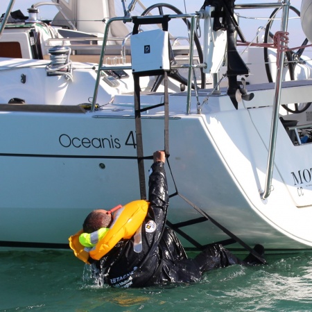 Mit MAGIC REBOARD® ist es möglich, auch ohne Hilfe, sicher wieder an Bord gelangen zu können. Mit der außenbords hängenden Reißleine lässt sich die Leiter vom Wasser aus öffnen und entfaltet sich automatisch. Die Länge passt zu den meisten Booten auf dem Markt. Die Stufen sinken durch das Eigengewicht. Es sollten vier Stufen unter Wasser liegen, um die Leiter im Notfall gut nutzen zu können. Durch die breiten Stufen passen beide Füße auf eine Stufe, wodurch das Klettern vereinfacht wird.