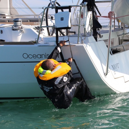 MAGIC REBOARD® ist eine Rettungsleiter, die leicht zu montieren und leicht zu nutzen ist. Einfach an die Heckreling hängen und die Reißleine über Bord hängen lassen.