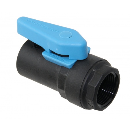 TRUDESIGN Kugelsperrventil Kompakt aus Kunststoff mit blauem Kunststoffhebel.