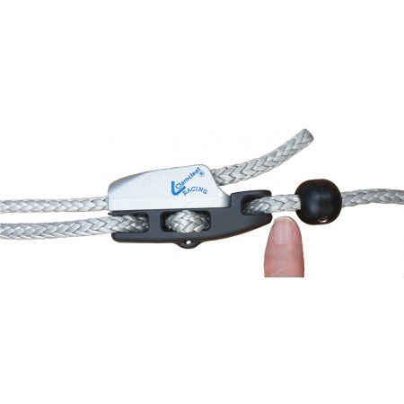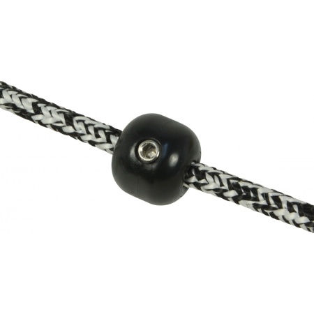 CLAMCLEAT Stopper ball that is fixed with a screw in the middle of a rope. The stainless steel screw is tightened with a 3 mm Allen key. It engages in the rope and holds the ball securely in position. To adjust, loosen the screw and re-tighten the ball in a new position. Made of shock-resistant material.