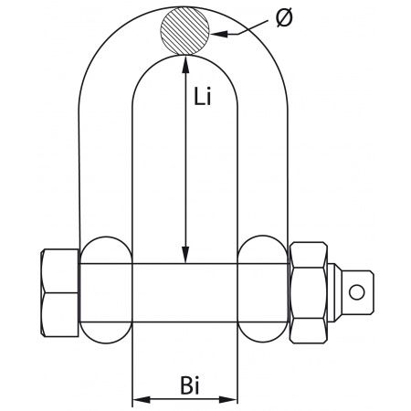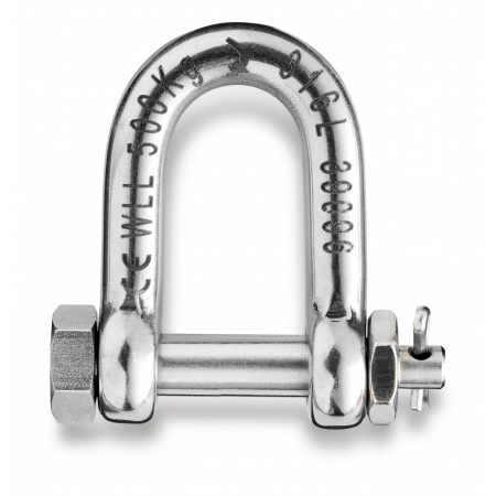CE certified D-shackle with safety pin.