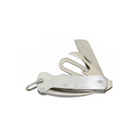 Boating knive made of stainless steel with blade, shackler, Marlin spike and can opener.