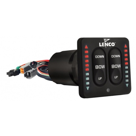 Integrated switch Kit for trim tabs equipped with a single actuator. Control unit with built in retractor. 76 cm wiring harness length from back of the switch bezel and 91 cm power pigtail (12 / 24 V). LED indicator light with automatic brightness control. Self-Check feature