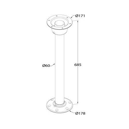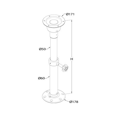 Manual adjustable table pedestal and screw lock mount base made of high grade Aluminium. Load capacity 25 kg. The base is mounted directly on the deck. No post hole required on deck.