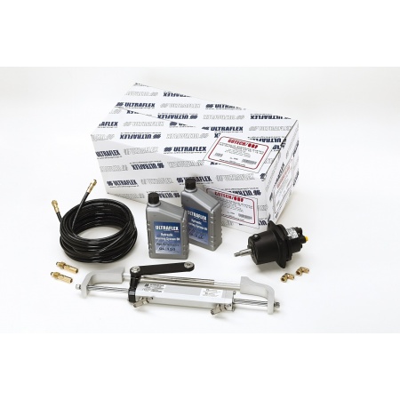 Hydraulic steering kit for outboard single engines up to 115 HP. 4,5 turns from lock to lock. Steering wheel not included.