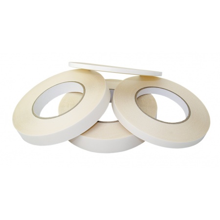 double sided adhesive tape, thickness approx. 0,09 mm. Non woven carrier, tear off. Good adhesive performance (acrylic adhesive) and high UV resistance. Carrier may change colour in special purposes because of the organic material