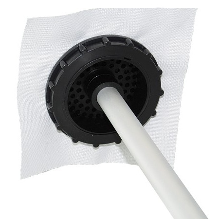 A simple and efficient vent for tarpaulins. Just insert the vent through a small opening in the tarpaulin and fix it from inside with the counterpart. The two cleat panels secures the Boat Vent 3 vent on the tarpaulin. Suitable for telescopic tarpaulin support from previous page.