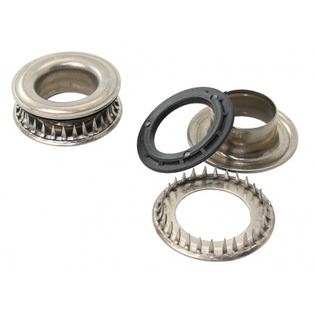 The Super Ring is the sailmaker’s best friend, and the most time efficient solution on the market as it can be pressed directly onto the sail. There is no cutting, sewing, webbing, taping or other action needed, simply punch a hole and press in the ring. When pressed onto a cloth, the teeth penetrate easily without damaging the surrounding area. Additionally, the teeth are evenly spaced to provide maximum holding power as they bend uniformly to spread the load.
