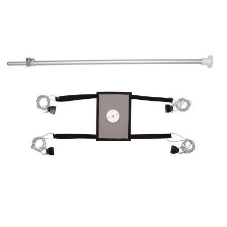 Support to fit the Air appliance, in all kind of inflatable boats. It´s made by an acrylic fabric, flexible belts with four hooks, to fit starboard and port. It includes a telescopic mast for it´s final tightening.