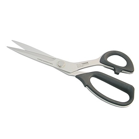 Top quality scissors for use on all kind of synthetics, Carbon- and glassfibre material. With micro serration. Ergonomic styled and padded grip made of "Elastomer" soft plastic. "Duplex interlock" screw for lasting blade tension. Usable with textiles/clothes, leather, paper/cardboard, foil/tarpaulin, special fibres, rubber.