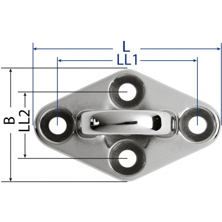WICHARD Diamond deck eye for ropes and webbings, round bracket, Duplex stainless steel