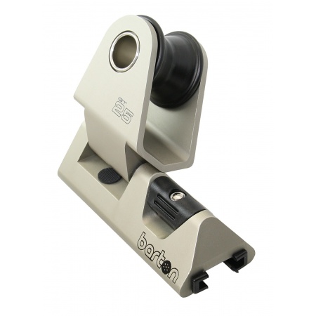 mit einer präzise gedrehten Scheibe aus Ertalyte, die auf einem Kern mit großem Durchmesser laufen, um auch unter Last frei zu laufen. Die Rolle ist extra breit, um auch zwei Schoten aufnehmen zu können.