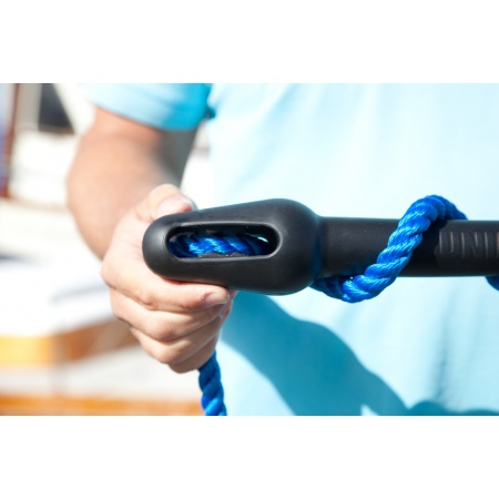 The Unimer Mooring Compensator provides cushioned relief for mooring lines, pier and deck fittings. The compensator is design protected and features a cleat shaped locking mechanism that prevents slipping. The self-locking internal elements in black polyamide stop chafed lines completely. The compensator comes in four different sizes, so you can choose the best fit for your boat. The same compensator size takes different line diameters, allowing you to vary your lines with changing conditions.