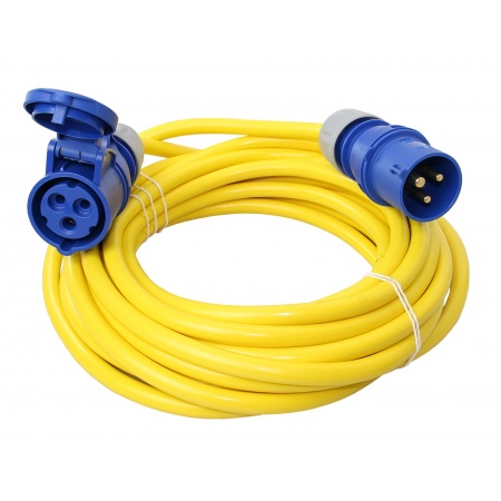 Cable is mechanically highly resilient, K35 cold-flexible down to -35°C, cable sheath made of highly flexible special plastic, sheath color yellow, with CEE plug and coupling 230V - 16A -3 poles