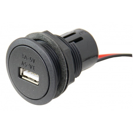 USB mounting charging socket 12 / 24 V. Output 5 V, 1x 3 A. Mounting hole 28 mm Ø