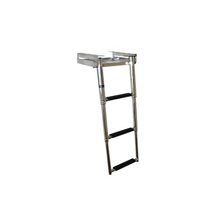 Telescopic boarding ladder made from 25mm stainless steel tubing. Rungs made of stainless steel with plastic coating and 23cm width. This ladder is for fixed mounting only. In case of no use just flip up the ladder and it folds down to a narrow height.