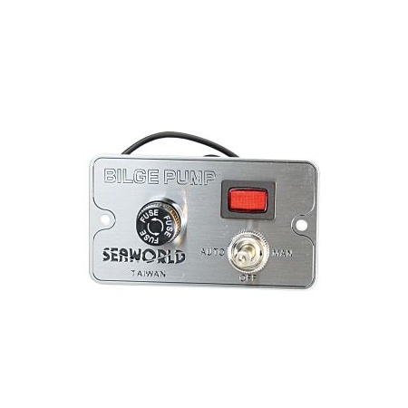 Bilge water alarm panel with control switch for manual control, off and automatic.