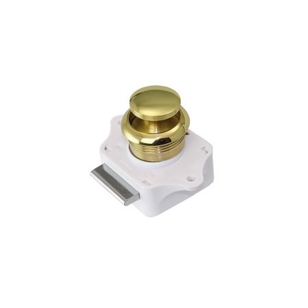 White push locks made of plastic. Knob and bushing made of brass. For door thickness 16-22 mm