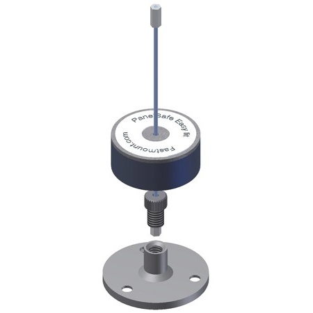 The PanelSafe holding system offers additional safety and control when removing panels. It allows a panel to be suspended below the ceiling for convenient maintenance behind the panel or controlled removal of the panel. FASTMOUNT recommends the use of a PanelSafe when installing ceiling panels.
