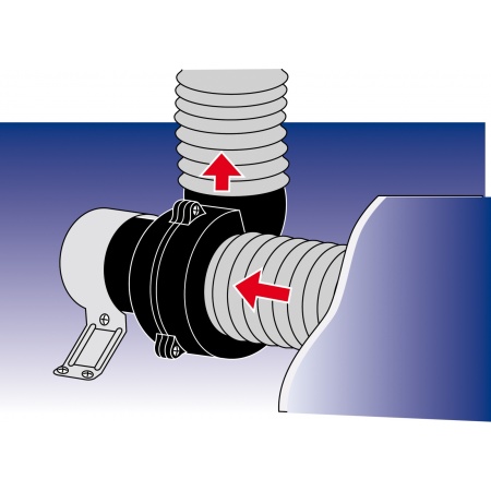 Blower with high volume air flow. The Flex Mount ensures a 360° adjustable outlet. Quiet running with Delrin rotors.
